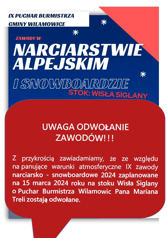na stoku Wisła Siglany o Puchar Burmistrza Wilamowic Pana Mariana Treli zostają odwołane.
